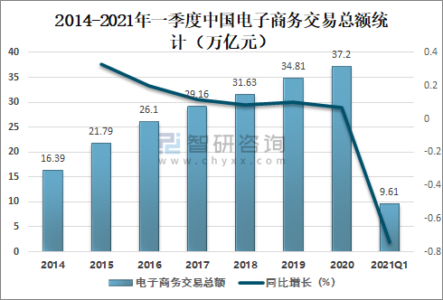2014-2021年一季度中國電子商務(wù)交易總額統(tǒng)計