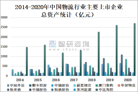 2014-2020年中國物流行業(yè)主要上市企業(yè)總資產(chǎn)統(tǒng)計(億元)