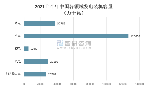2021上半年中國各領(lǐng)域發(fā)電裝機(jī)容量