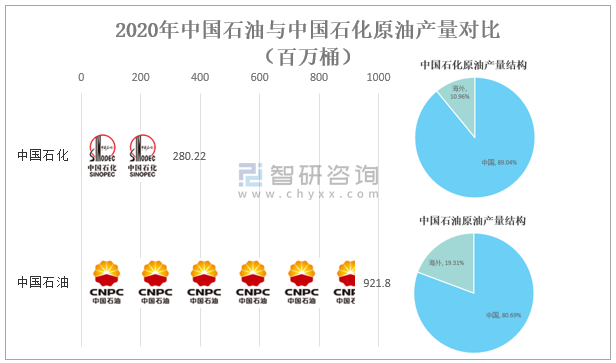 2020年中國石油與中國石化原油產量對比