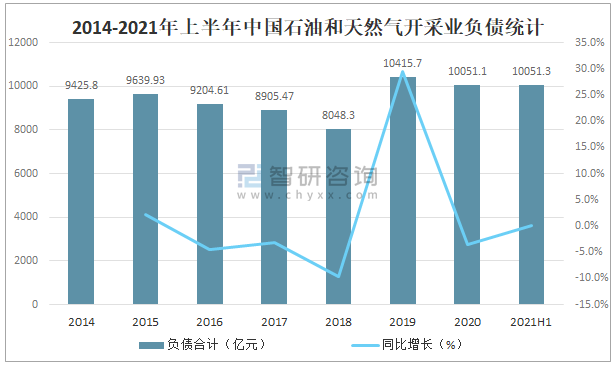 2014-2021年上半年中國石油和天然氣開采業負債統計