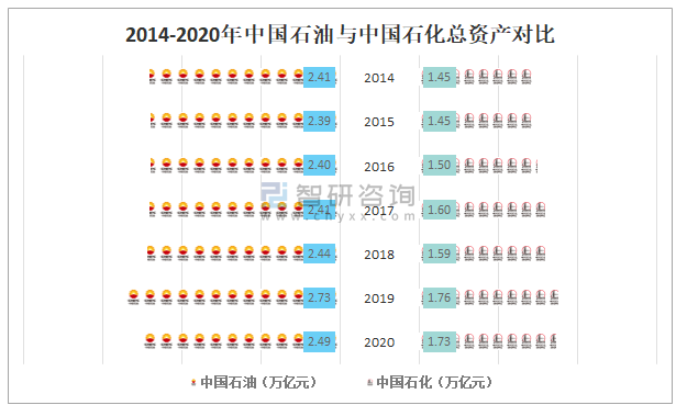 2014-2020年中國石油與中國石化總資產對比