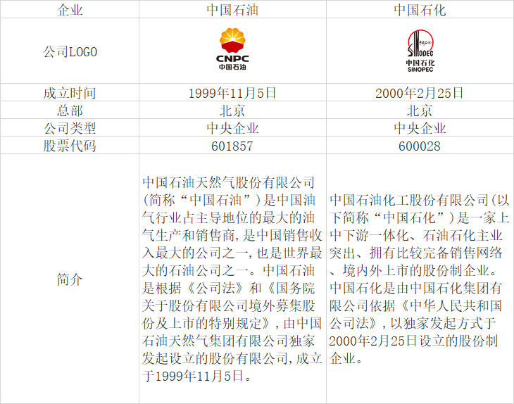 中國石油與中國石化基本情況對比