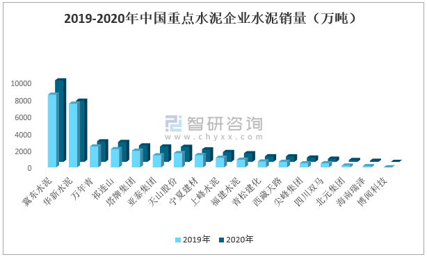 2019-2020年中國重點水泥企業(yè)水泥銷量(萬噸)