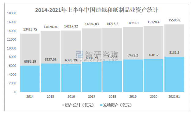 2014-2021年上半年中國造紙和紙制品業(yè)資產(chǎn)統(tǒng)計(jì)