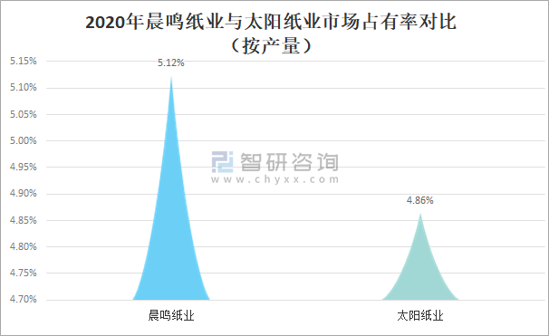 2020年晨鳴紙業(yè)與太陽紙業(yè)市場占有率對比(按產(chǎn)量)