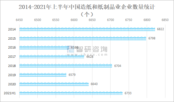 2014-2021年上半年中國造紙和紙制品業(yè)企業(yè)數(shù)量統(tǒng)計(jì)