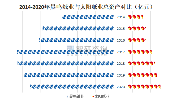 2014-2020年晨鳴紙業(yè)與太陽紙業(yè)總資產(chǎn)對比(億元)