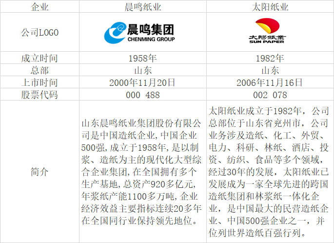 晨鳴紙業(yè)與太陽紙業(yè)基本情況對比