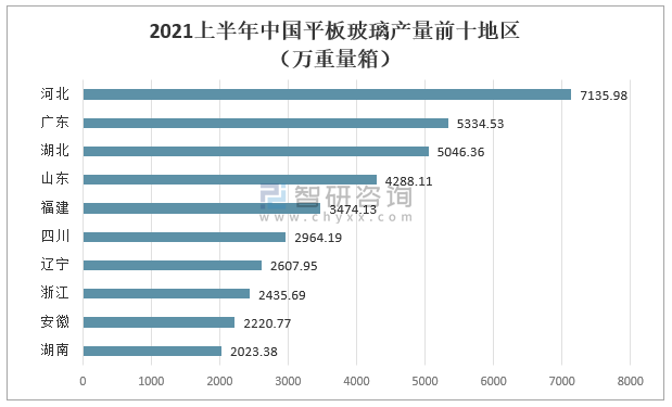 2021上半年中國平板玻璃產量前十地區