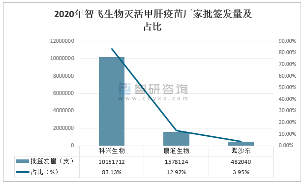 2020年智飛生物滅活甲肝疫苗廠家批簽發量及占比