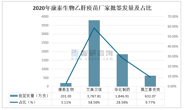 2020年康泰生物乙肝疫苗廠家批簽發量及占比