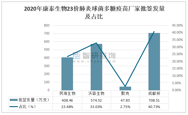 2020年智飛生物23價肺炎多糖疫苗廠家批簽發量及占比