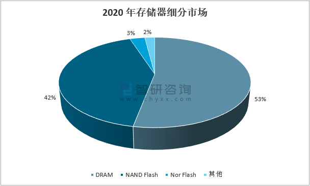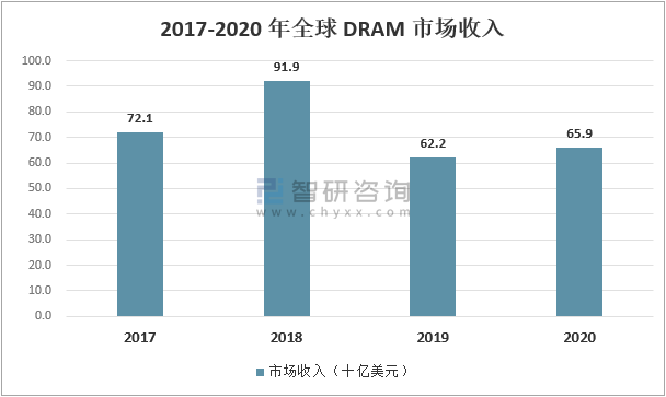 2017年至2018年,DRAM市場規模呈現快速上升趨勢。市場規模從2016-2018年的721億美元增加到2018年的999億美元。2019年,由于半導體的整體下行周期,DRAM市場規模降至622億美元,2020年DRAM市場規模恢復至659億美元。