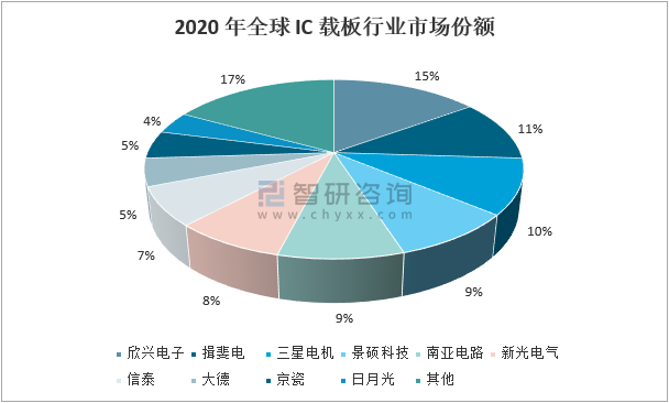 在營業收入和產能規模方面,日本、韓國和臺灣具有領先優勢。2020年,全球前十大包裝基板企業占據80%以上的市場份額,其中欣興集團、揖斐電和三星電機分別占14.78%、11.20%和9.86%,位居前三位。