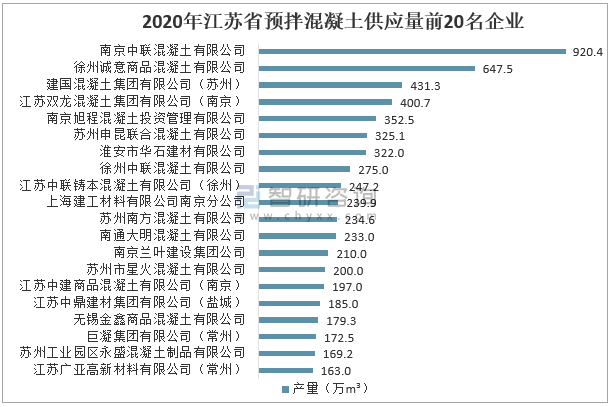 2020年江蘇省預拌混凝土供應量前20名企業