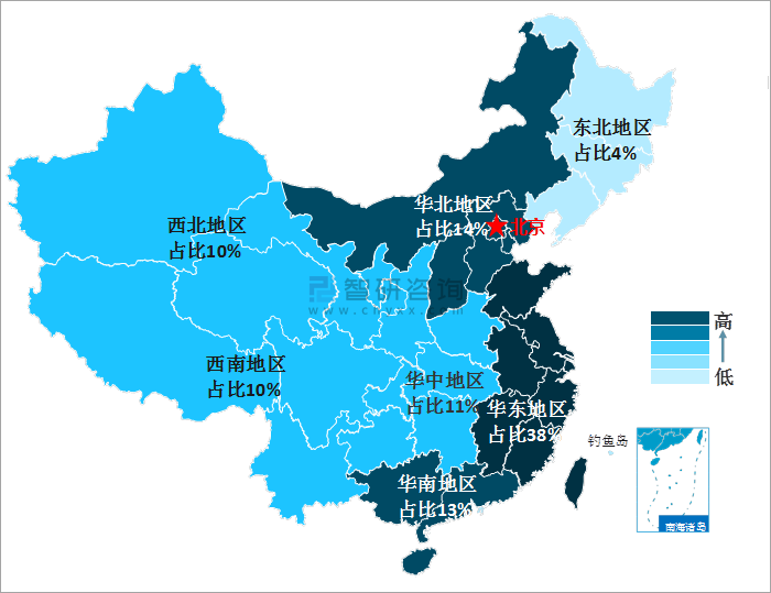 智研咨詢發布的《2021-2027年中國預拌混凝土行業市場深度分析及未來趨勢預測報告》數據顯示:當前全國預拌混凝土生產企業的數量增長較快,從企業分布來看,中國預拌混凝土企業主要集中在華東地區,占比達38%;華北地區、華南地區、華中地區分別占比14%、13%、11%。