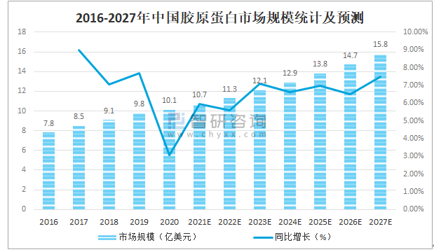 2016-2027年中國膠原蛋白市場規模統計及預測