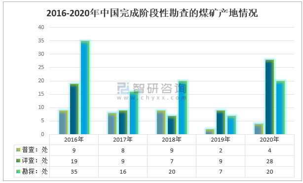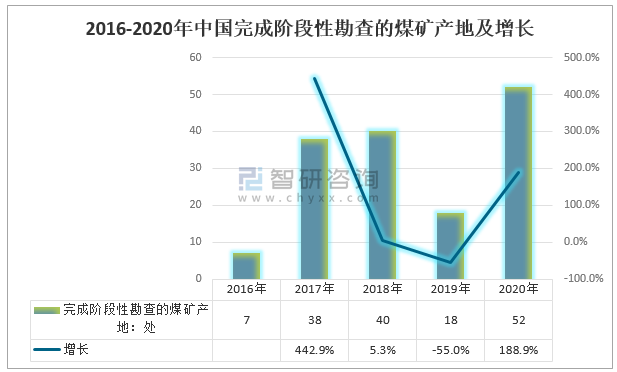 2016-2020年中國完成階段性勘查的煤礦產(chǎn)地及增長