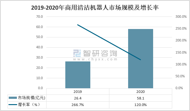 2019-2020年商用清潔機器人市場規模及增長率