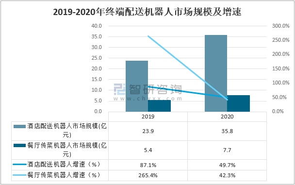 2019-2020年終端配送機器人市場規模及增速