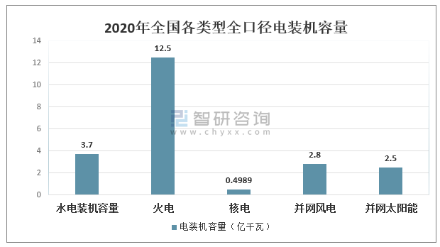 截至2020年底,全國全口徑水電裝機容量3.7億千瓦、火電12.5億千瓦、核電4989萬千瓦、并網風電2.8億千瓦、并網太陽能發電裝機2.5億千瓦。全國全口徑非化石能源發電裝機容量合計9.8億千瓦,占全口徑發電裝機容量的比重為44.8%,比上年底提高2.8個百分點。全口徑煤電裝機容量10.8億千瓦,占總裝機容量的比重為49.1%,首次降至50%以下。