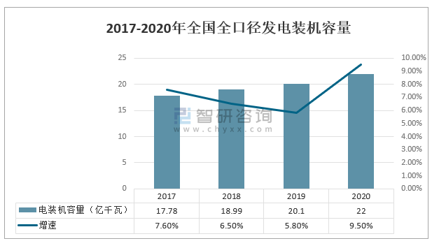 2017-2020年全國全口徑發電裝機容量
