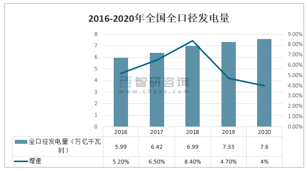 2016-2020年全國全口徑發電量