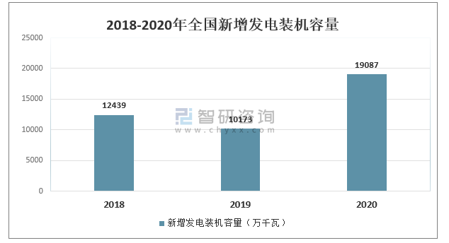 2018-2020年全國新增發電裝機容量