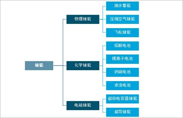 儲能是指通過介質或設備把能量存儲起來,在需要時再釋放的過程。按照能量儲存方式,儲能可分為物理儲能、化學儲能、電磁儲能三類,其中物理儲能主要包括抽水蓄能、壓縮空氣儲能、飛輪儲能等,化學儲能主要包括鉛酸電池、鋰離子電池、鈉硫電池、液流電池等,電磁儲能主要包括超級電容器儲能、超導儲能。
