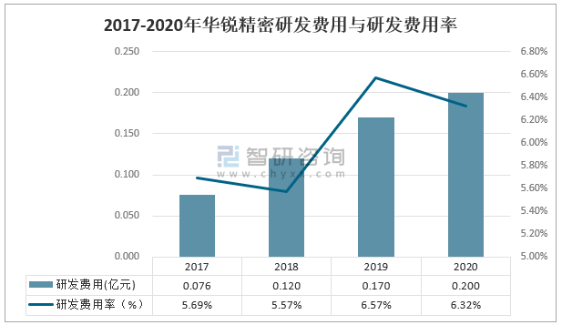2017-2020年華銳精密研發(fā)費用與研發(fā)費用率