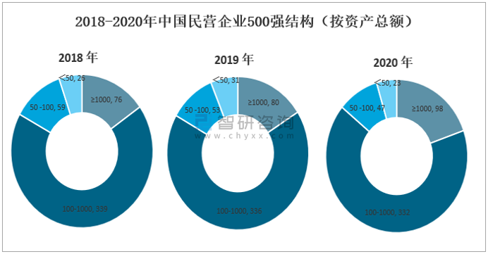 2018-2020年中國民營企業500強結構(按資產總額)