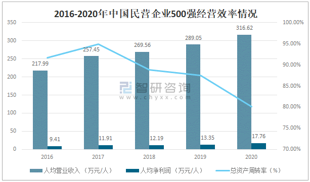 2016-2020年中國民營企業500強經營效率情況