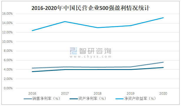 2020年中國民營企業500強盈利能力和經營效率整體有所提升,2020年中國民營企業500強銷售凈利率為5.61%,較2019年增長了0.99%;資產凈利率為4.49%,較2019年增長了0.45%;凈資產收益率為15.16%,較2019年增長了1.71%。