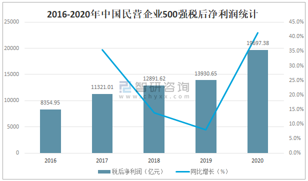 2016-2020年中國民營企業500強稅后凈利潤統計