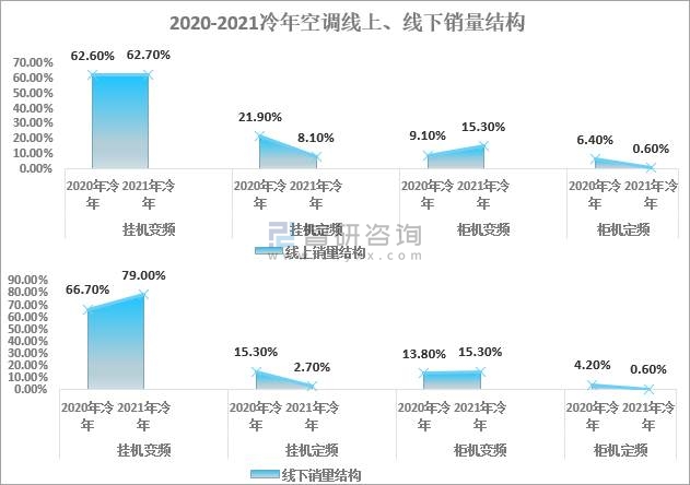 2020-2021冷年空調(diào)線上、線下銷量結(jié)構(gòu)