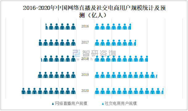2016-2020年中國(guó)網(wǎng)絡(luò)直播及社交電商用戶規(guī)模統(tǒng)計(jì)及預(yù)測(cè)