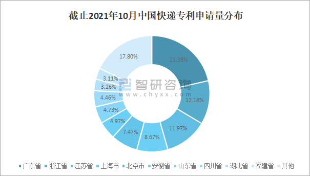 截止2021年10月中國(guó)快遞專利申請(qǐng)量分布