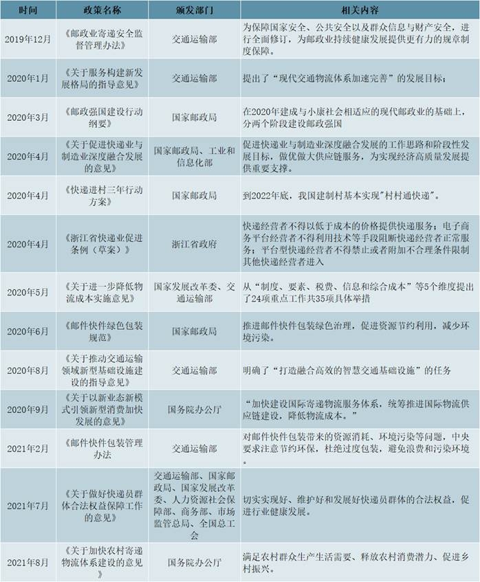 近期中國(guó)快遞行業(yè)相關(guān)政策梳理