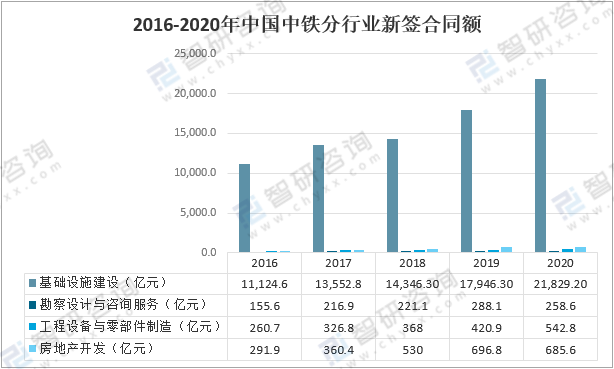 2016-2020年中國中鐵分行業新簽合同額