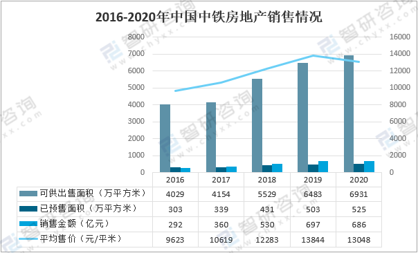 2016-2020年中國中鐵房地產銷售情況