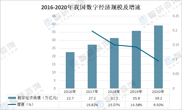 2016-2020年我國數字經濟規模及增速