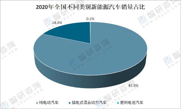 2020年全國(guó)不同類別新能源汽車銷量占比