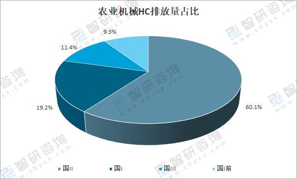 按排放標準劃分,國Ⅱ標準的農業機械排放碳氫化合物(HC)為 12.2萬噸,占比60.1%;國Ⅰ標準的農業機械排放碳氫化合物(HC)為3.9萬噸,占比19.2%;國Ⅲ標準的農業機械排放碳氫化合物(HC)為2.4萬噸,占比11.4%;國Ⅰ前標準的農業機械排放碳氫化合物(HC)為1.9萬噸,占比9.3%。