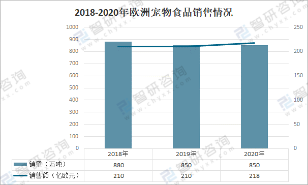 2018-2020年歐洲寵物食品銷售情況