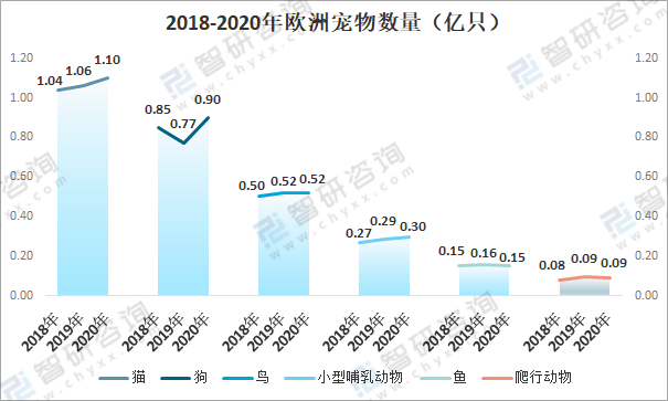 2018-2020年歐洲寵物數(shù)量(億只)