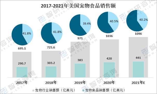 2017-2021年美國(guó)寵物食品銷售額