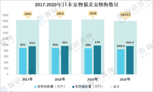 2017-2020年日本寵物貓及寵物狗數(shù)量
