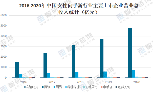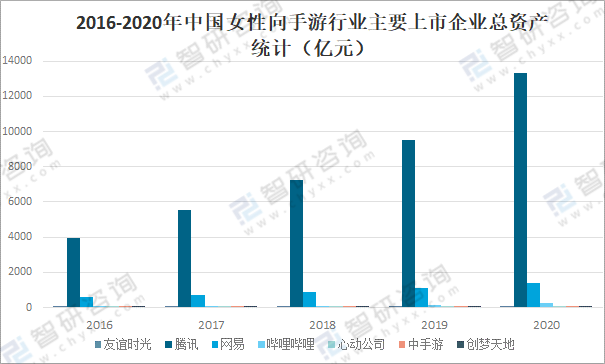 中國女性向手游市場上市企業主要有友誼時光、騰訊、網易、嗶哩嗶哩、心動公司、中手游、創夢天地等,2020年友誼時光、騰訊、網易、嗶哩嗶哩、心動公司、中手游、創夢天地總資產均保持增長趨勢,2020年友誼時光總資產達17.92億元,較2019年增加了2.81億元;騰訊總資產達13300億元,較2019年增加了3760.14億元;網易總資產達1419億元,較2019年增加了298億元;嗶哩嗶哩總資產達238.7億元,較2019年增加了83.5億元;心動公司總資產達33.45億元,較2019年增加了4.79億元;中手游總資產達63.31億元,較2019年增加了11.23億元;創夢天地總資產達67.53億元,較2019年增加了6.66億元。