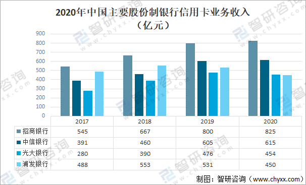 2020年中國主要股份制銀行信用卡業(yè)務(wù)收入